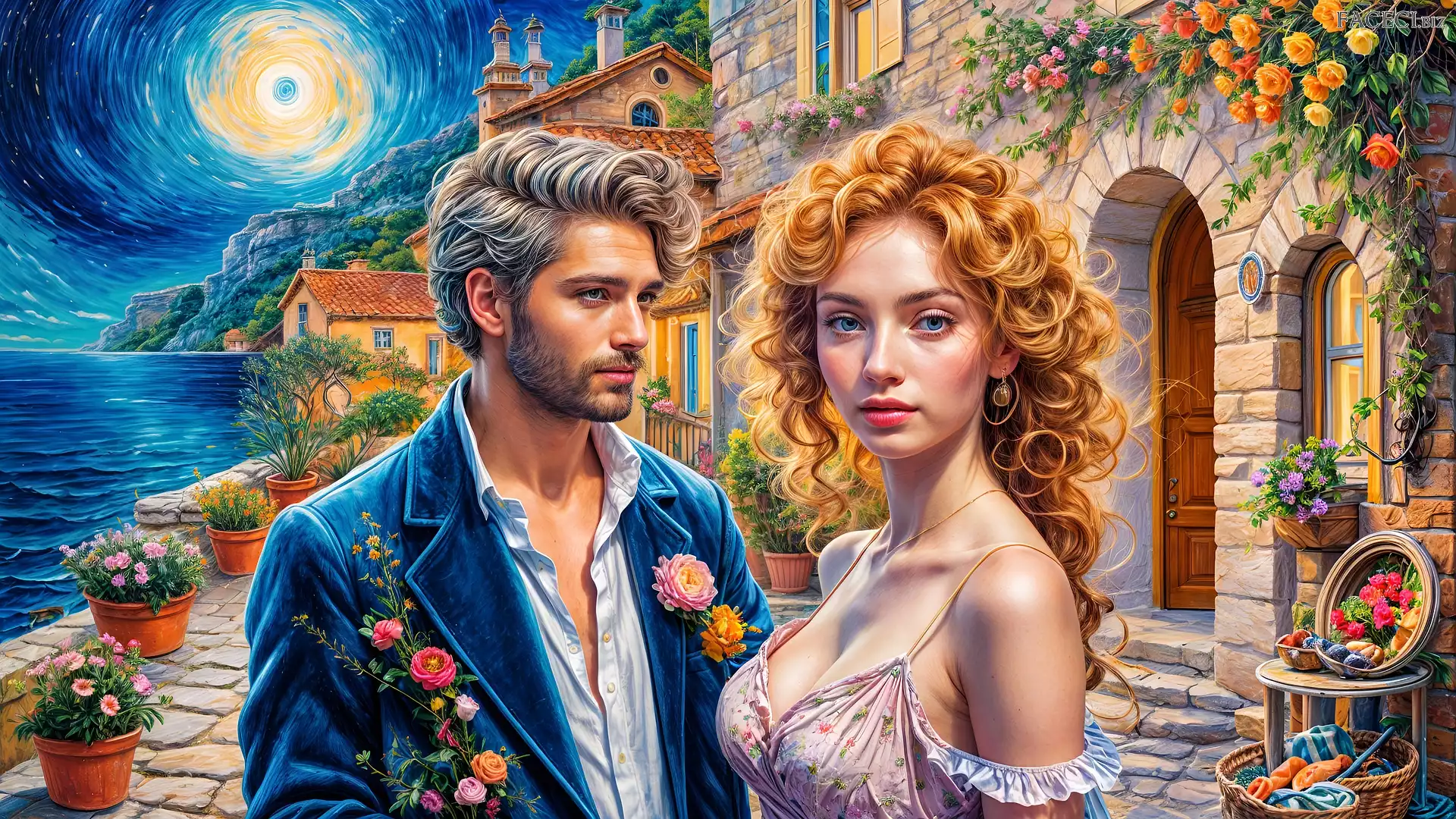 Grafika, Para, Kobieta, Mężczyzna, Dom, Księżyc - faceci.biz